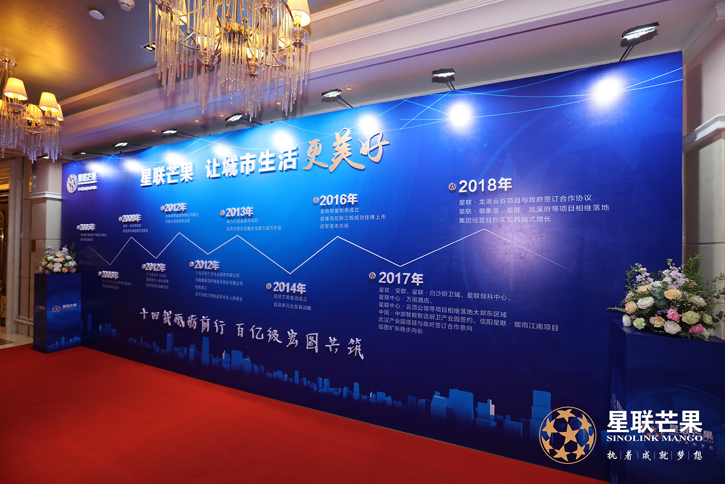 步入現場,星聯14載的成長歷程映在眼中,短短的一段品牌縮影,每一步都凝聚著星聯的磨練、沉淀與成長。14載攜手同行,星聯芒果集團發展成為一家以地產開發為主業的大型綜合性百億級企業,業務領域涵蓋了房地產開發與運營、智能智造產業園、生態環境與健康、金融投資與服務四大板塊。