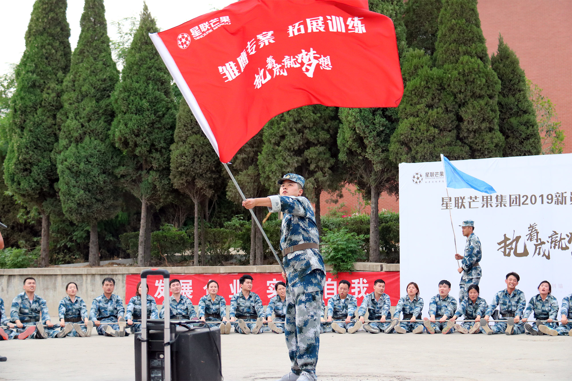 5月25日-26日,星聯芒果集團開展了2019年度新員工拓展訓練,115名員工參與了此次拓訓。活動旨在培養員工團隊精神,促進企業文化建設,增強凝聚力和向心力,提升員工責任感及歸屬感。星聯芒果集團副董事長郝伊凝女士出席開營授旗儀式。