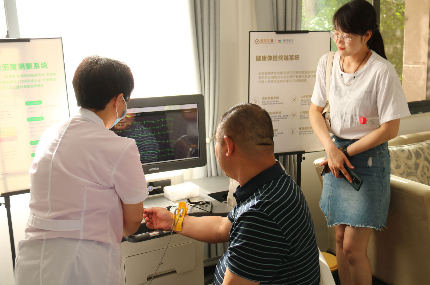 星聯智慧健康生活服務中心,是星聯健康醫療板塊的在已交付社區中具體落地的實施項目,通過匯聚醫療健康發展的全產業要素,建立健康云管理系統、社區服務系統、健康同業聯盟,注重對居住者健康生活行為習慣的指導,將康養醫療、健康管理、健康教育等服務植入到每個社區中,滿足業主全生命周期健康需求。當參觀到智慧健康生活服務中心時, 代表們對智慧健康數據監測設備產生了極大的興趣,紛紛圍觀、感受現場健康指標分析等體驗環節。